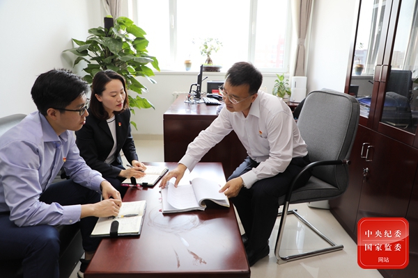 北京市朝阳区纪委监委审查调查室同志在讨论工作(北京市朝阳区纪委监委供 陶涌伟 摄)