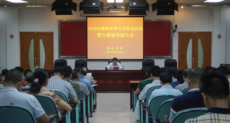 本网讯 按照广东省纪委和肇庆市纪委2016年开展纪律教育学习月活动的工作部署,结合中央、省委和市委关于开展“两学一做”学习教育的要求,我校于9月7日启动纪律教育学习月活动。校领导、党委委员、纪委委员及全体中层领导干部和二级党组织纪检组长参加。