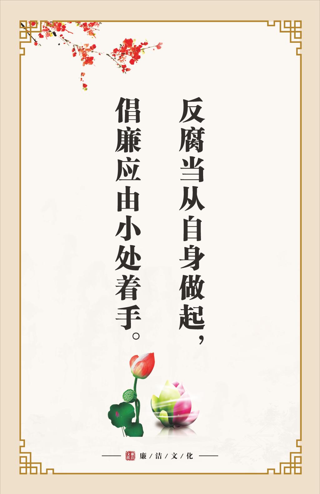 反腐当从自身做起,倡廉应由小处着手。